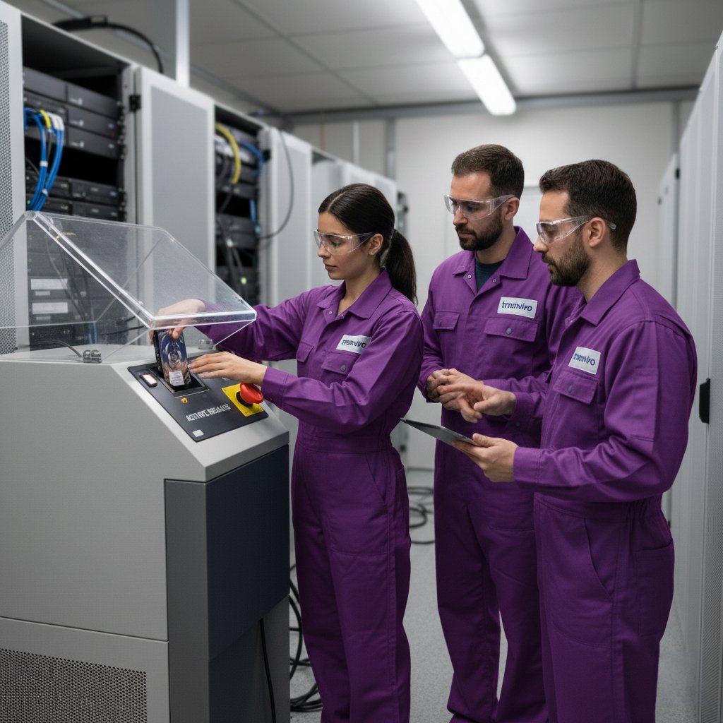 Upon completion of the degaussing process, TMEnviro provides a Certificate of Secure Data Destruction, detailing the method used, date of destruction, and asset information. This certificate serves as official documentation for audit, compliance, and internal record purposes.